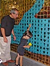 "Welcome!" depicts two hands reaching out to shake hands. Each of the 3400 hand-made tiles has an individual figure glazed onto its surface. The mural symbolizes the moment when a passenger is transformed from an anonymous traveler, by recognition or a greeting, into a unique person at the beginning or end of a journey.