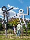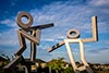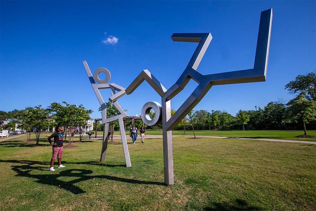 The artwork installations features four stainless steel figures, each approximately fourteen feet tall.